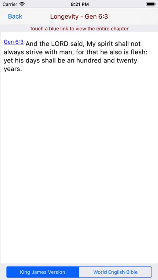 Designed to be fast and easy to use, the controls are very simple; search or scroll the topic list, pick a topic, then click on the verse references to see the scripture for each sub-topic. You can even click on a scripture verse to view the entire chapter so that you can better understand the full-context of the verse. You can also move forward and backwards through chapters and you can change the font size to best suit your taste. Changing bible versions is as easy as touching the appropriate button.