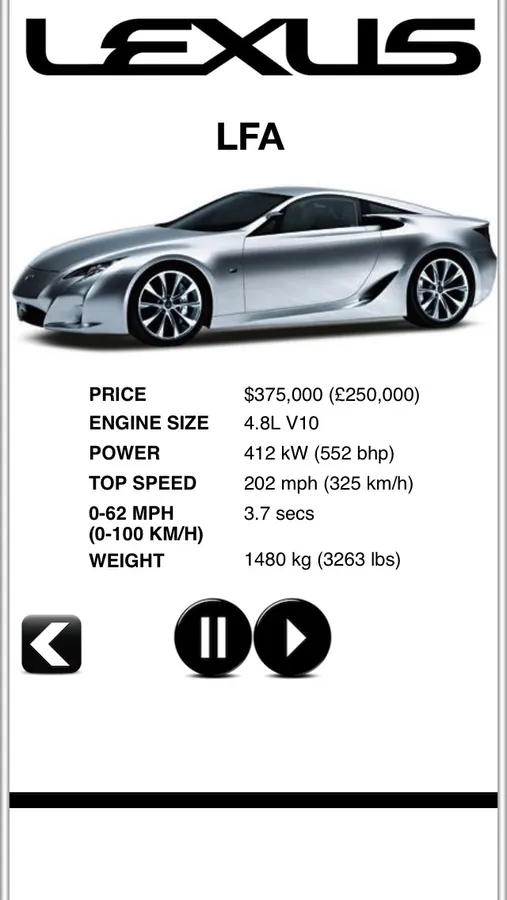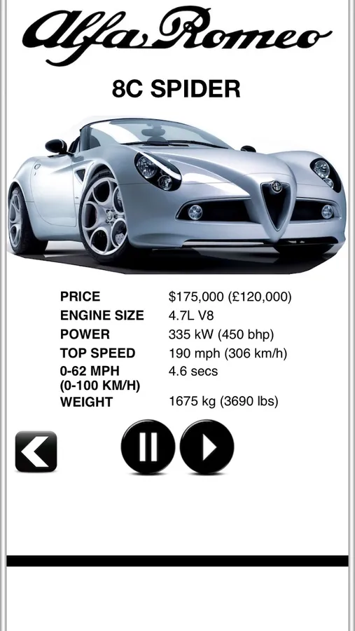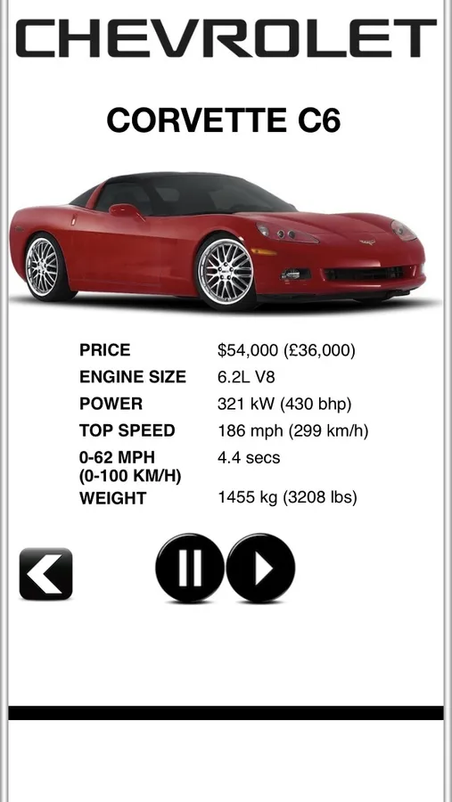 Beautiful Pictures and Performance Information of each car optimized for the Retina Display and the iPhone 5!