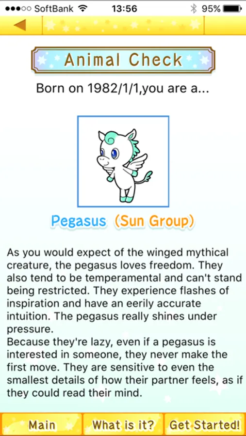 With just a date of birth, Doubutsu Uranai(R) will give you a straight diagnosis that fits that special someone's personality traits to one of the 12 animal types.