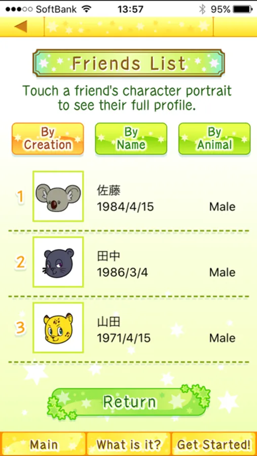 You can also change your Friends List to sort the entries by order of creation, name, or animal!