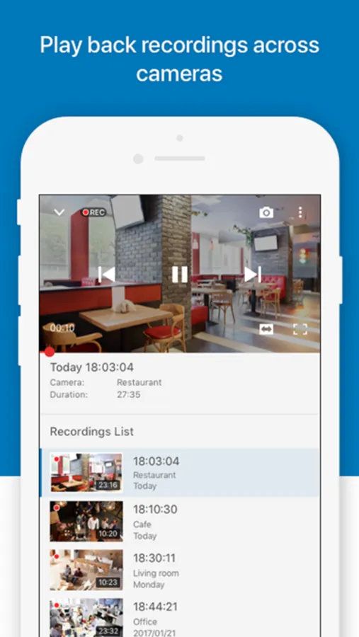 DS cam makes it possible to monitor and receive alert notifications from all your surveillance cameras set up on a Synology DiskStation. Smart features such as PTZ, patrols or lens control allow for perfect control of your cameras in real-time, while advanced filters make it easy to pinpoint any specific event from large lists of recordings. You can even perform all essential management tasks, from disabling a camera to unlocking and deleting a snapshot.