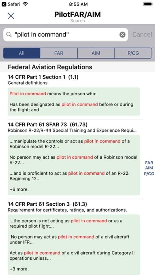 - Cross-reference hyperlinks. When a regulation, AIM, or PCG entry references another, just tap to follow the link.
