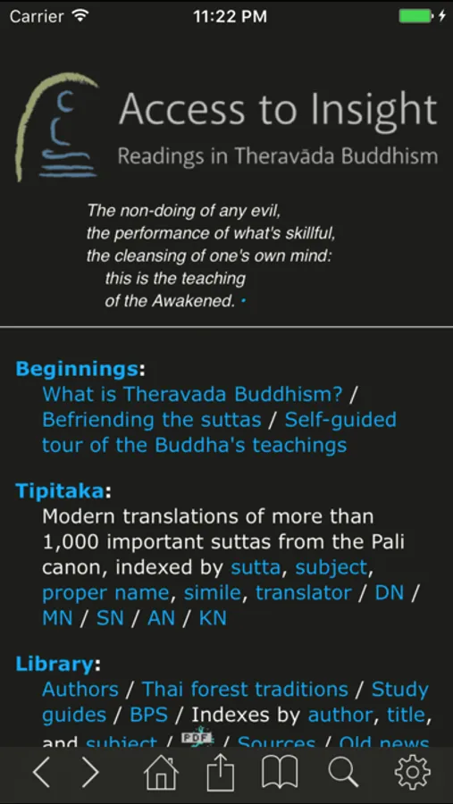 "Access to Insight is an Internet website dedicated to providing accurate, reliable, and useful information concerning the practice and study of Theravada Buddhism, as it has been handed down to us through both the written word of the Pali canon and the living example of the Sangha."