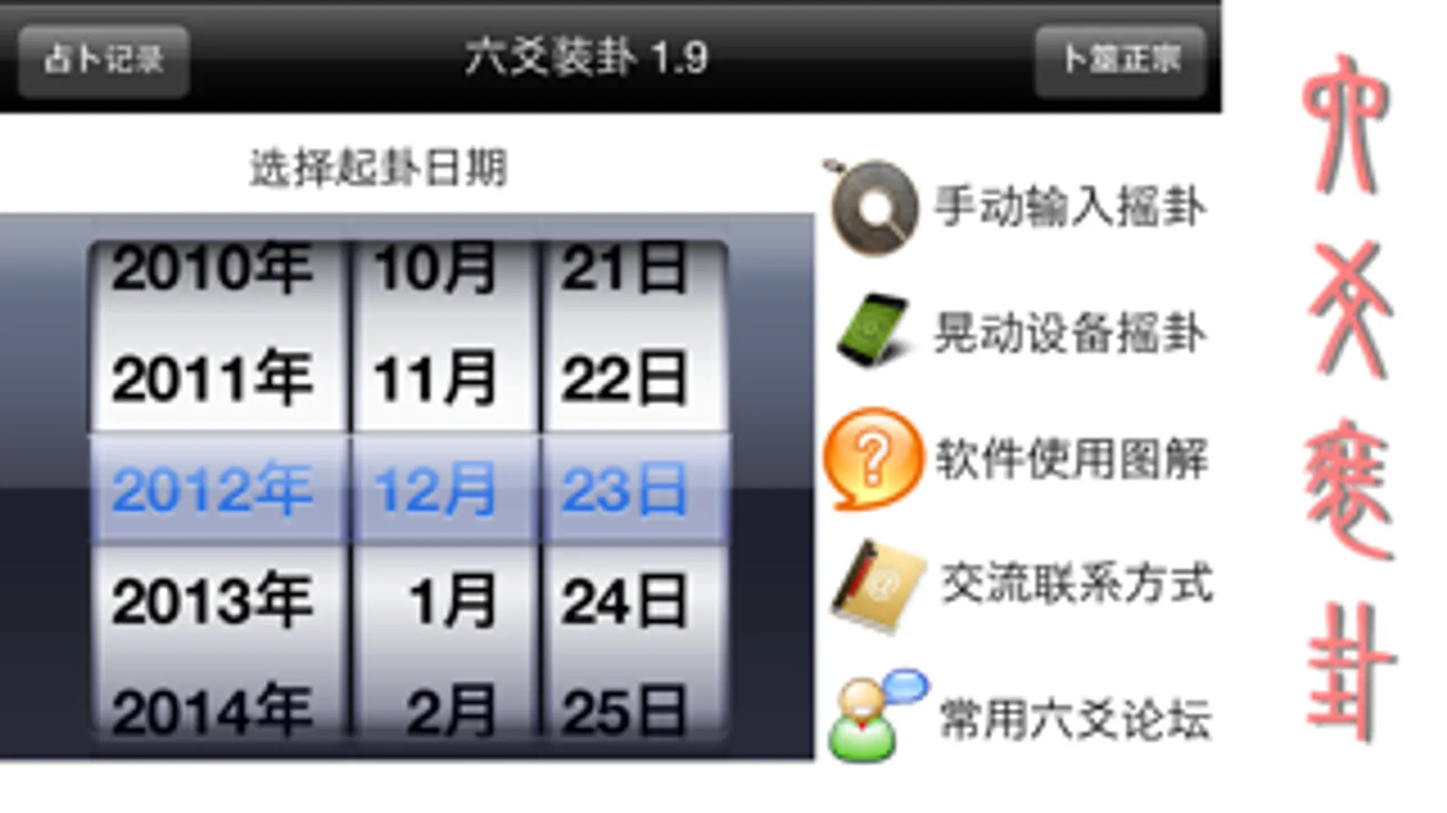 可以说“六爻装卦”是一款比较完善的 iphone 装卦程序。