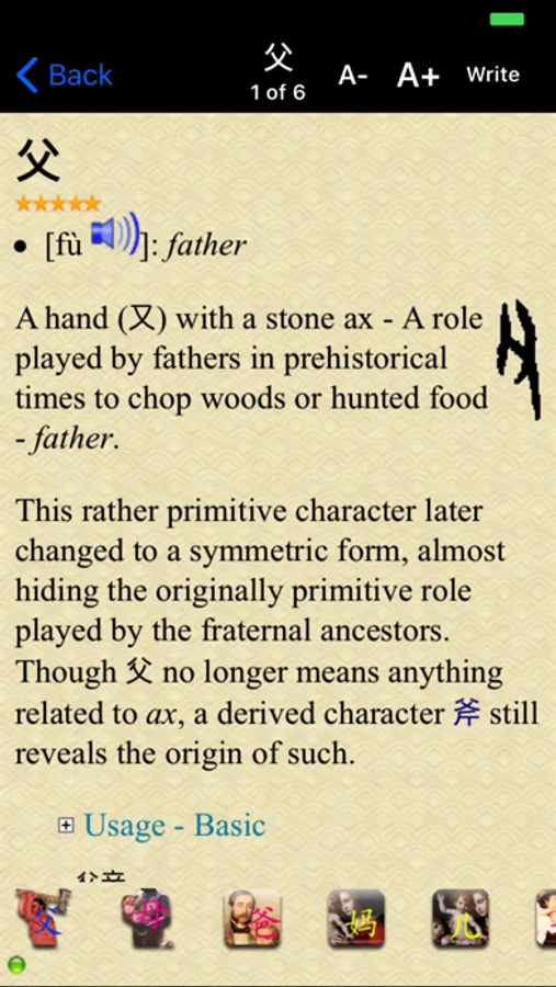 Besides explaining the picture meanings, this application also demonstrates the correct way of writing the characters and even let you practice on your iPhone side by side with the demonstration. You'll find that you will be able to read and write dozens of Chinese characters in no time!
