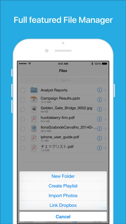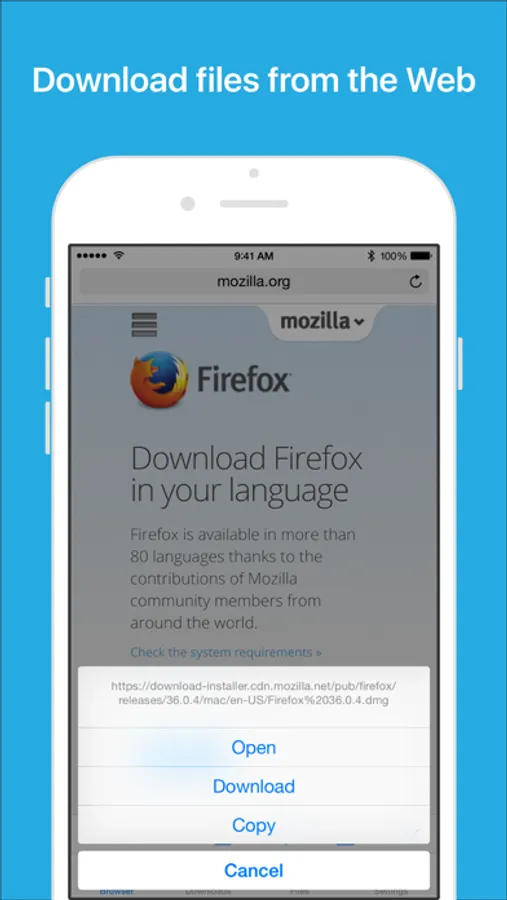 Files App (formerly known as Downloads Lite) features a Web browser that lets you save documents to your iPhone or iPod touch so that you can work with them offline. It has a built-in file manager, with robust viewer for all iOS supported document types, powerful photo browser, advanced PDF reader, full Dropbox support, and more.