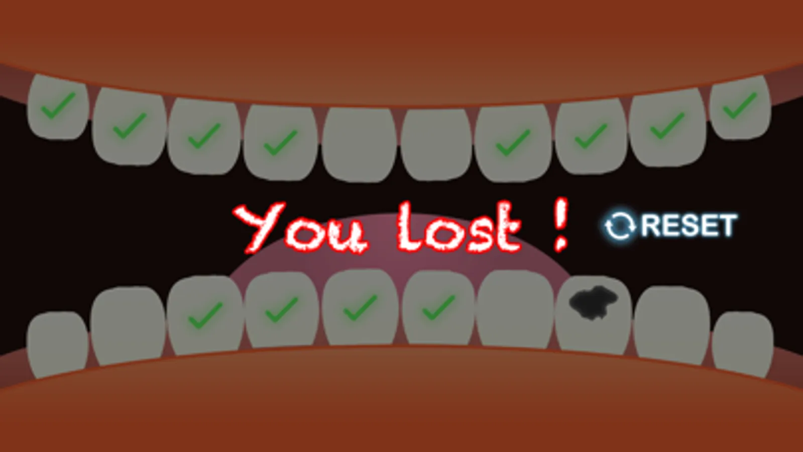 Each player can have one turn to tap one of the tooth. Player lost when pushes down the wrong tooth.