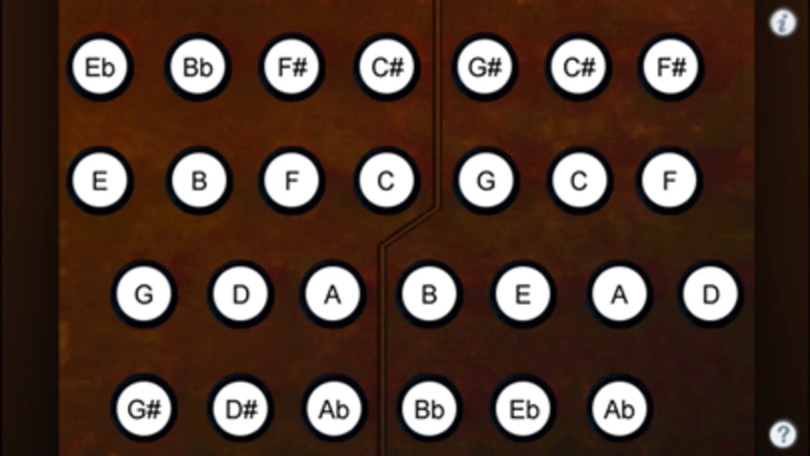 To play, hold the iPhone between your thumb and little fingers of both hands, exactly like a real English Concertina, and press the buttons with your index and middle fingers. Scale patterns alternate between the fingers of the right and left hands. Notes are higher in pitch as you move from the outside to the middle of the screen.