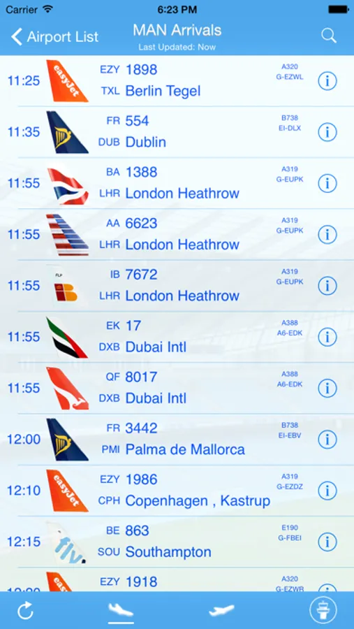 • Advanced search tools for flight, status and destination information. Simply enter ANY keywords to filter out your flight.
