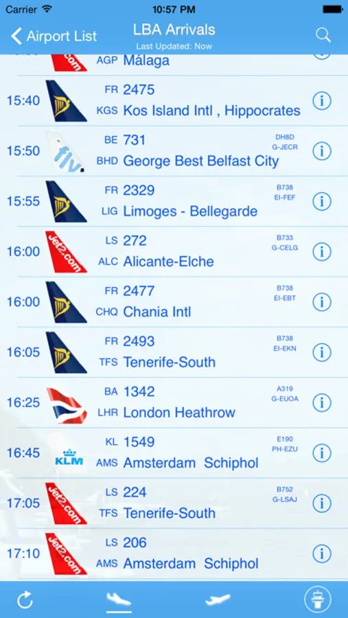 • Advanced search tools for flight, status and destination information. Simply enter ANY keywords to filter out your flight.