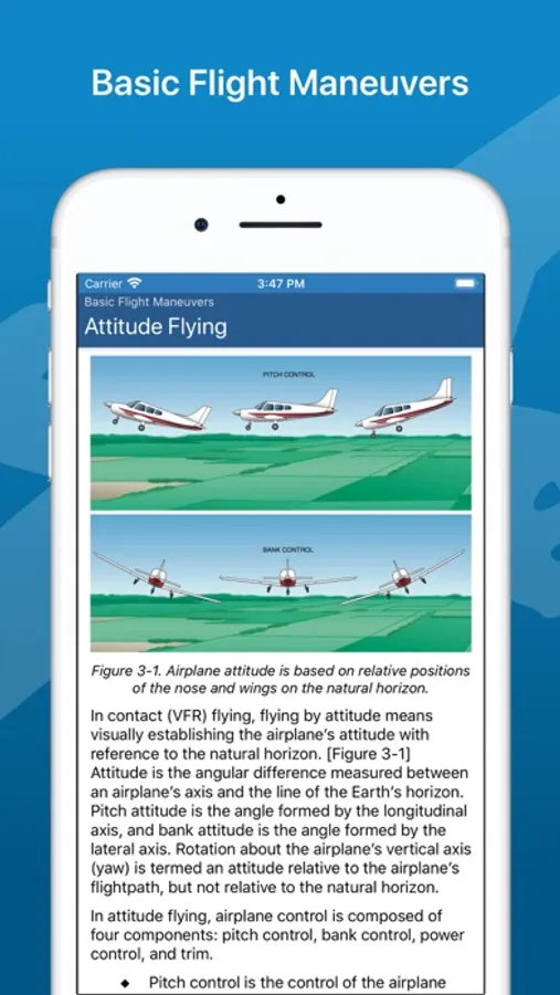 This app introduces the basic pilot skills and knowledge essential for piloting airplanes. It benefits student pilots, as well as those pilots wishing to improve their flying proficiency and aeronautical knowledge, pilots preparing for additional certificates or ratings, and flight instructors engaged in the instruction of both students and licensed pilots.