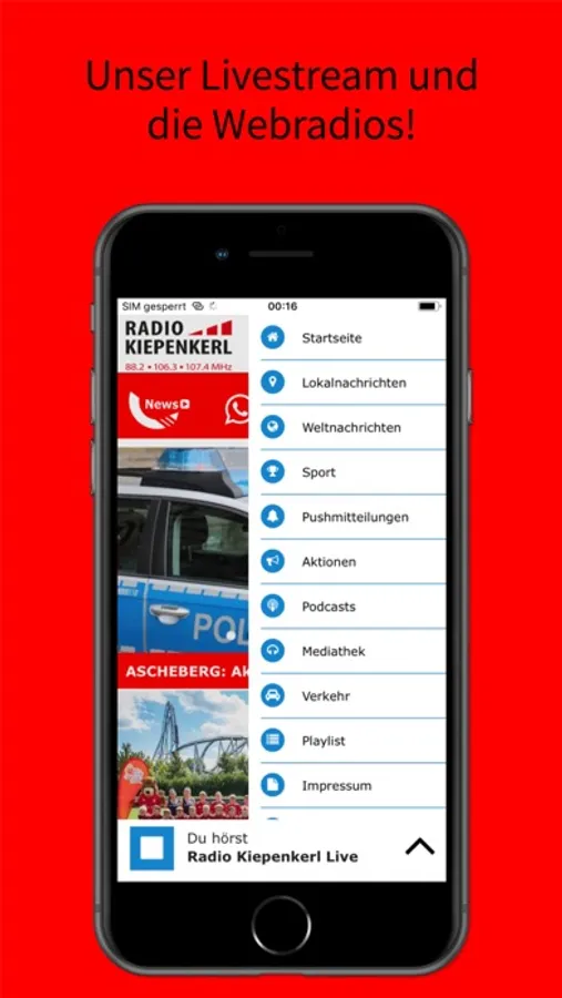Mit der Radio Kiepenkerl App hast du uns immer und überall dabei, wir bringen dir kostenlos deine Lieblingsmusik auf dein Smartphone oder Tablet. Dazu bekommst du aktuelle Nachrichten, das Wetter und die Verkehrsinfos aus dem Kreis Coesfeld und dem Münsterland und erfährst, wo bei uns was los ist.