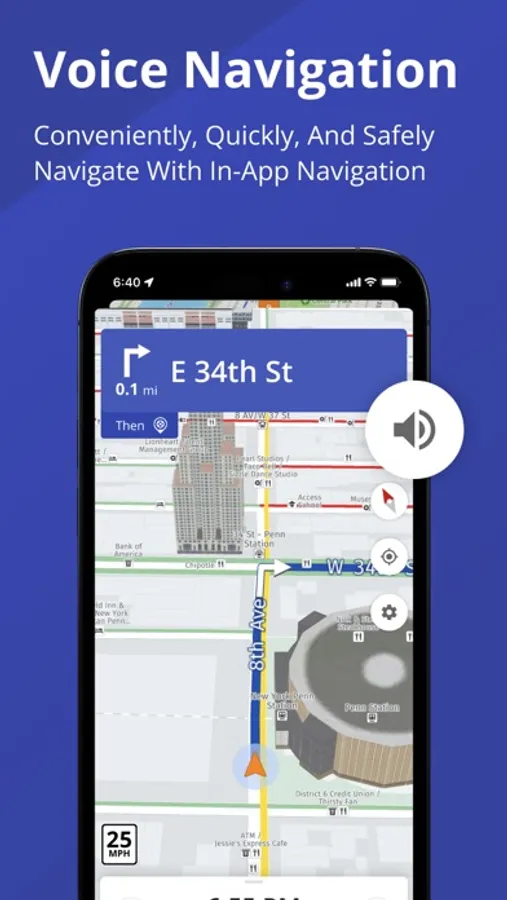 Once your multi-stop route is planned, one click per destination gets you voice-guided turn-by-turn directions in your favorite navigation app.