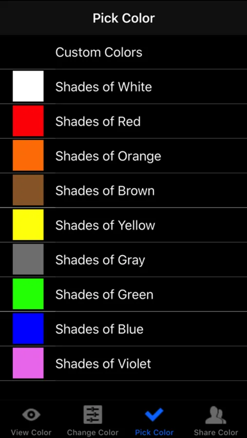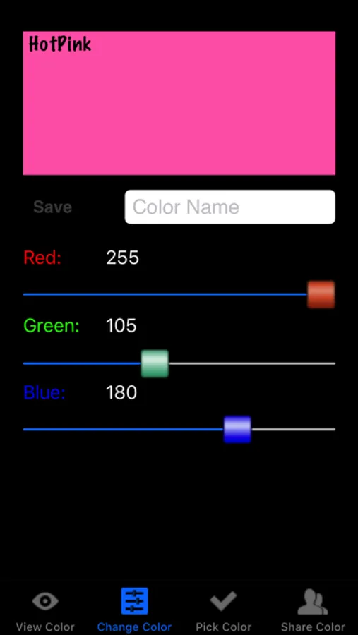 Your new color can be displayed full screen on the iPhone or iPod Touch. This can be useful for selecting paint or fabric colors.