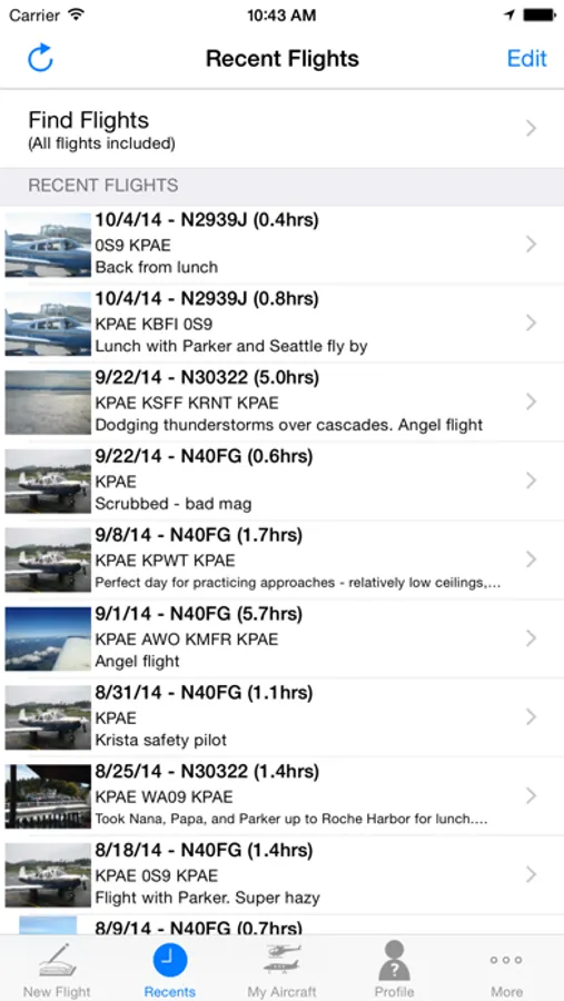• Upload, edit, and view pictures for flights (either existing, or taken with the iPhone/iPad camera), including comments.