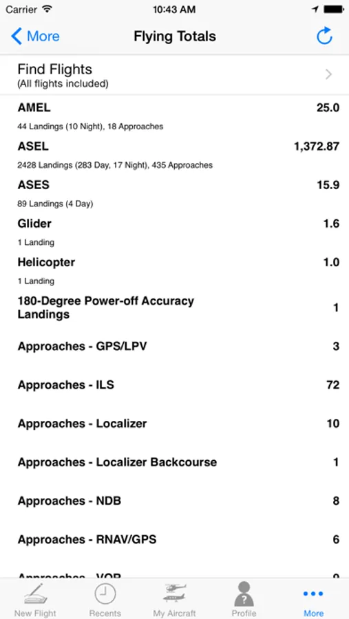 • View flying totals and do customized searches.