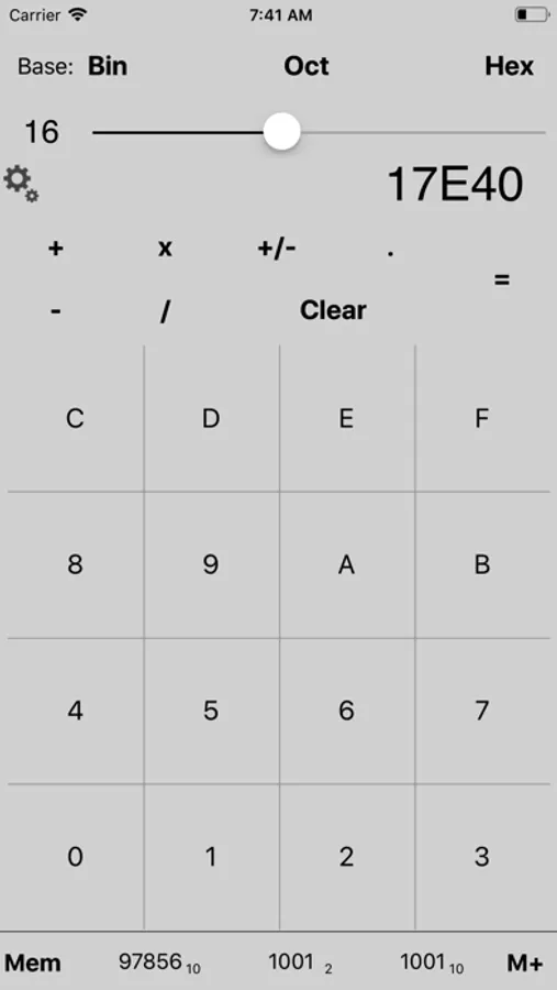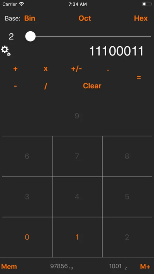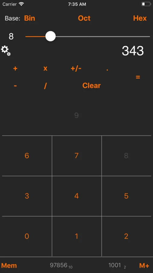 You can also store numbers in any base for later use. Unlimited memory slots are available, with shortcuts to the most recent saved numbers at the bottom of the screen.