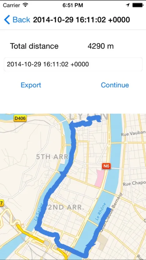 You can afterwards review your previous tracks on your phone, including interactive map, distance and speed travelled, or export one as a gpx and a KML file for use with other software (GPX is lingua franca for Locations). You can use it with google earth to review your trails on the desktop. You can directly export to houdah gps on the mac to geotag a large amount of pictures rapidly.