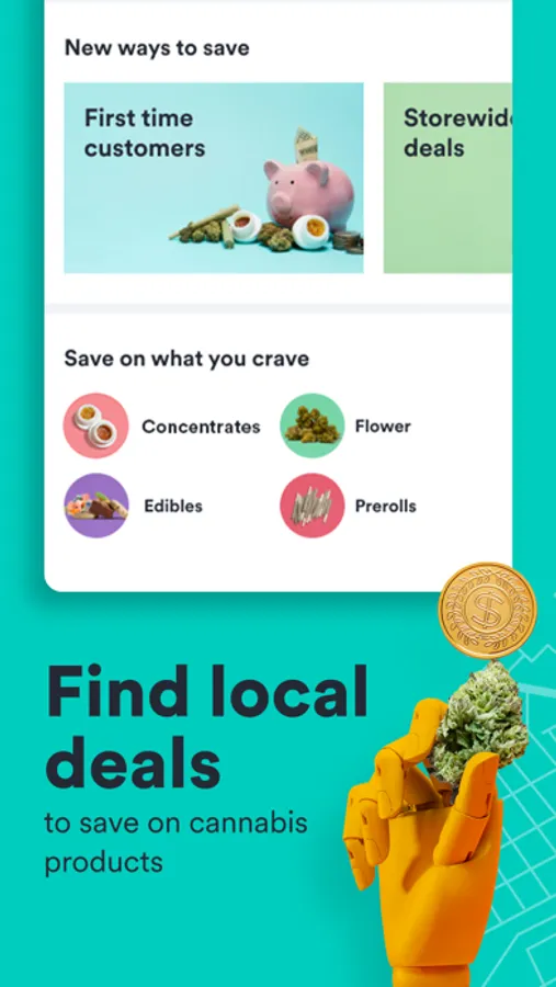 Stay in the loop: Save your favorite retailers, products and strains for quick access later and you’ll get notifications on weed deals, coupons and promo codes for your favorite pot and hemp retailers and products.
