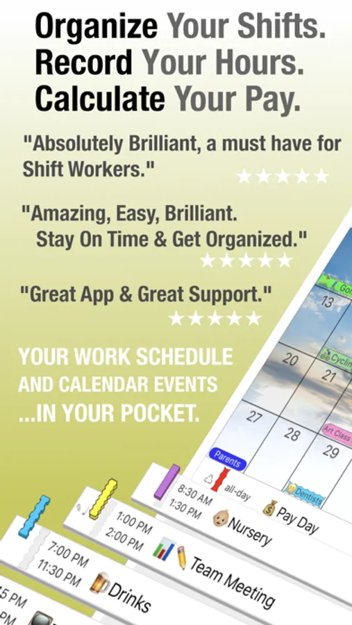 ShiftLife has a simple easy to use interface for quick intuitive operation and functionality designed specifically for easy use. This will quickly become one of your indispensable Apps.