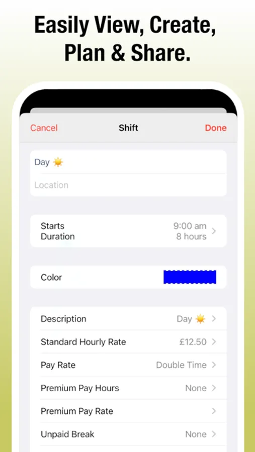* Fast Shift Entry. A whole year of shifts can be done in seconds.