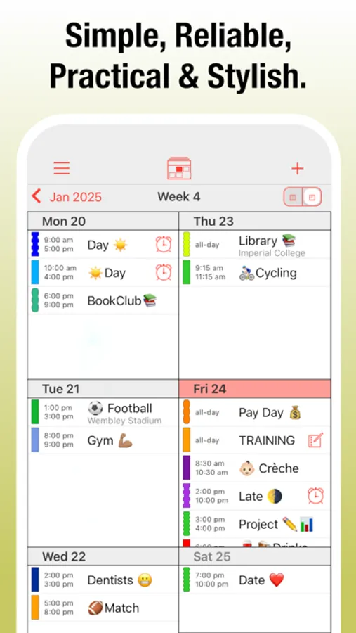 * List, Day, Week, Month & Year Views.