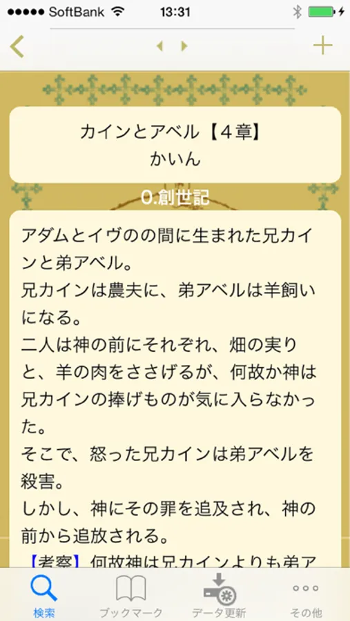 最新バージョンでは、創世記の天地創造、バベルの塔、カインとアベル、アダムとイヴなどの解説と歴史的考証や少々の批判を追加掲載。