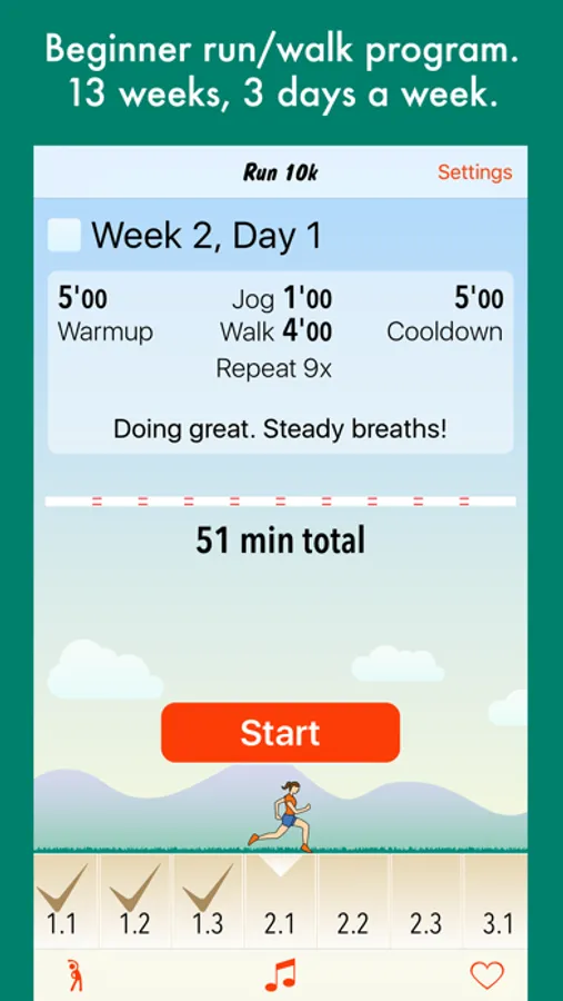 If you’ve completed our Run 5k app and you're feeling good, you can start on Week 4 or 5 of our Run 10k app to continue your training. If you’re a couch potato, start from Week 1, or check out our Run 5k app first.