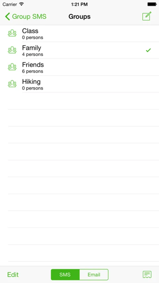 Group SMS will show you the groups that are already defined in the Contacts app of your iPhone. It also allows you to create new groups as well as modify your existing groups and contacts.