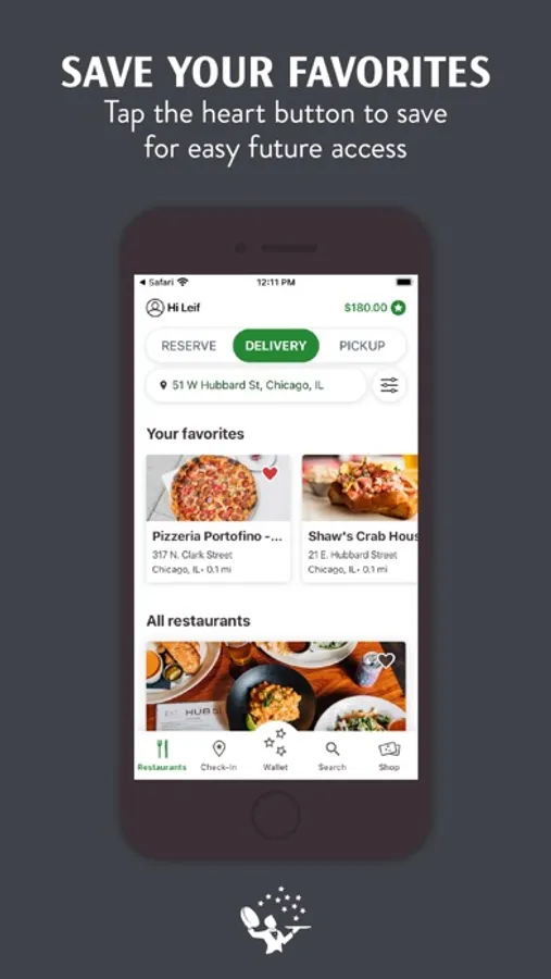 Save Your Favorites: Tap the heart button on the top right of the restaurant photo to save your favorites for easy access. You can now view your favorites right at the top of the home screen.
