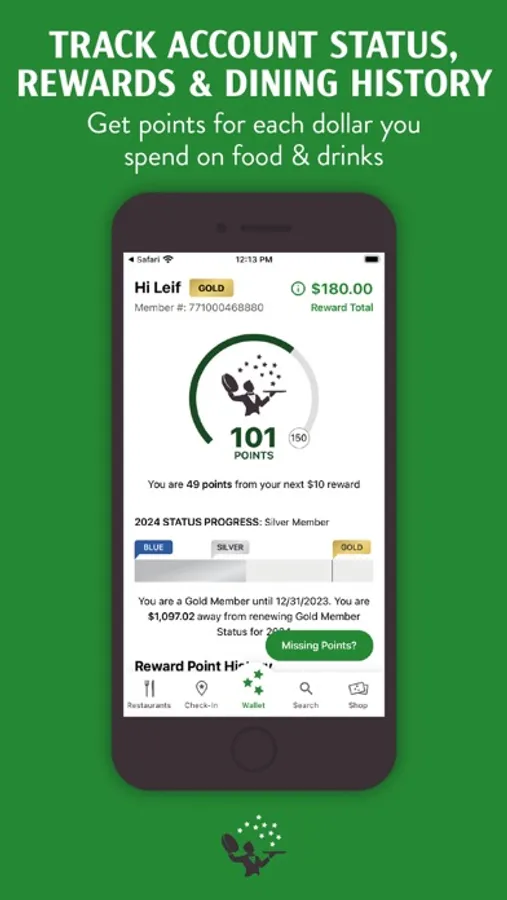 New Wallet: Check out the new Rewards Wallet! Easy access to all of your rewards, gift cards and vouchers. Track your points progress to the next $10 reward and track your member status. View your transaction history. See how long you have until any vouchers expire.