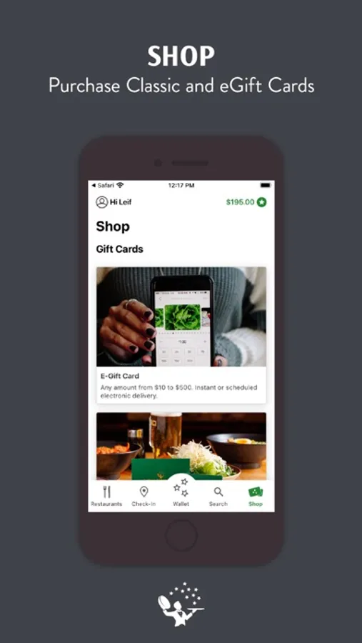 Purchase Gift Cards: Visit the shop tab to Purchase Classic and eGift Cards.