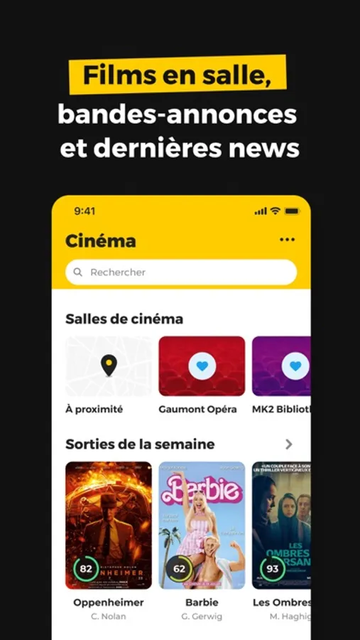 - Enregistrer vos salles de cinéma préférées et avoir un accès rapide en page d’accueil