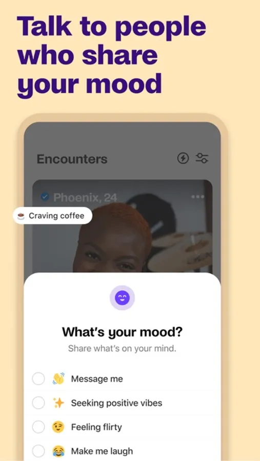 - Encounters: Straight forward swiping, right to connect and left for skip.