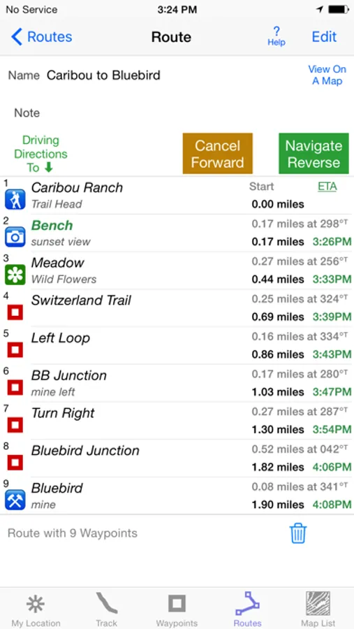 Set a quick GoTo waypoint or a full route & see the heading, direction, distance, elevation change and Estimated Time of Arrival at your destination & intermediate waypoints along the trail.