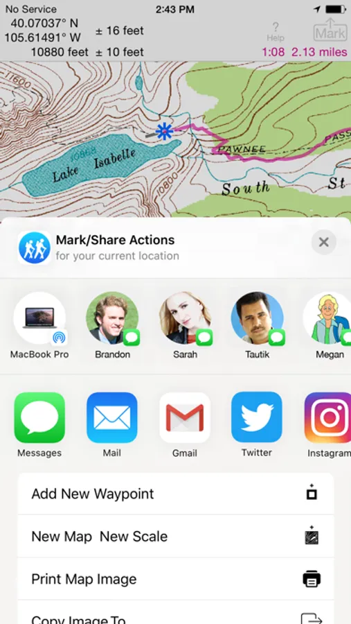 Mark waypoints precisely using topo or satellite maps, place names or addresses, geotagged photos or by projecting from a known point.