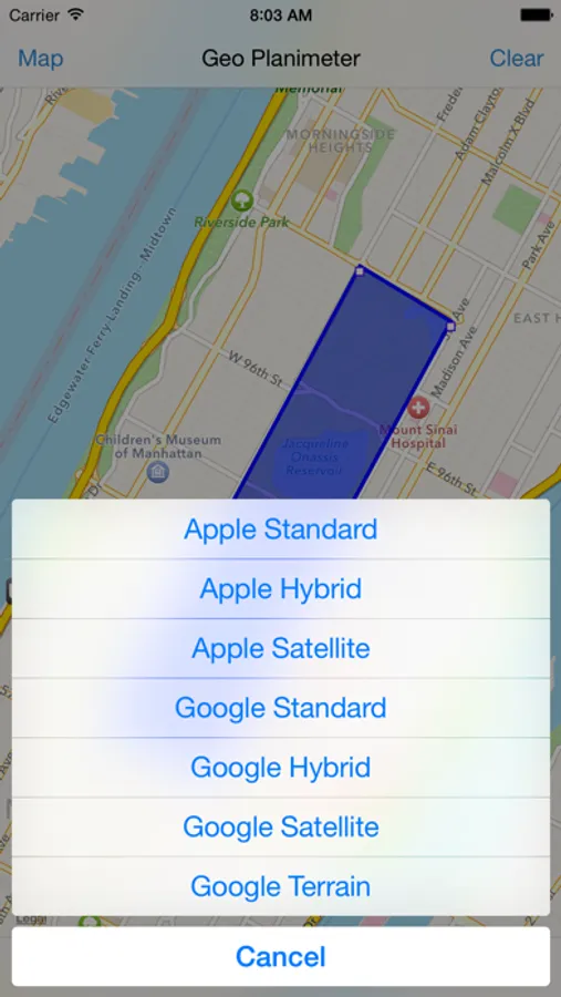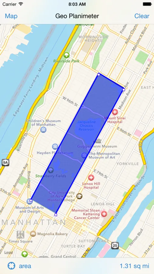 Geo Planimeter measures the area of an arbitrary shape or its perimeter on a map. This way you can easily measure anything around you!