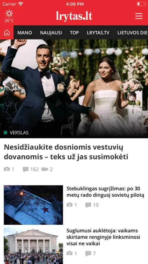 Lrytas.lt naujienų portalas - Jūsų išmaniąjame telefone. Šios programėlės pagalba galėsite skaityti karščiausias naujienas iš Lietuvos ir viso pasaulio, sužinoti, kokie orai bus artimiausią savaitę bei horoskopą savo zodiako ženklui, žiūrėti video naujienas, laidų įrašus arba "Lietuvos Ryto TV" gyvai.
