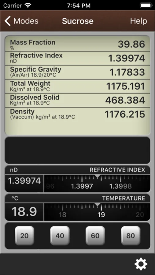 •Simply enter Refractive Index and Temperature from any refractometer to compute and displays all values for Specific Gravity, Density, Total Weight, Mass Fraction and Dry Substance weight.