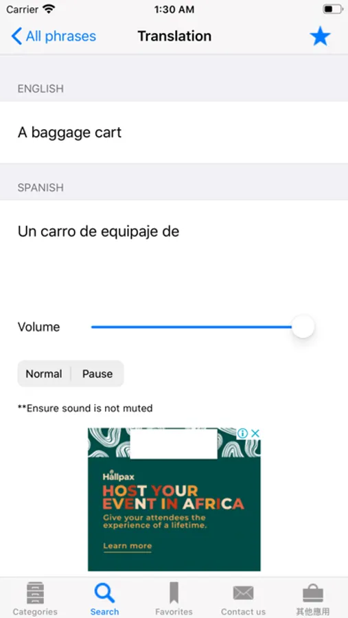 2. NO INTERNET ACCESS NEEDED. Download the audio recordings and translated text phrases for all the categories when you download the iPhone application, so you won’t end up footing an enormous bill for data roaming charges when traveling abroad in connecting to the internet.
