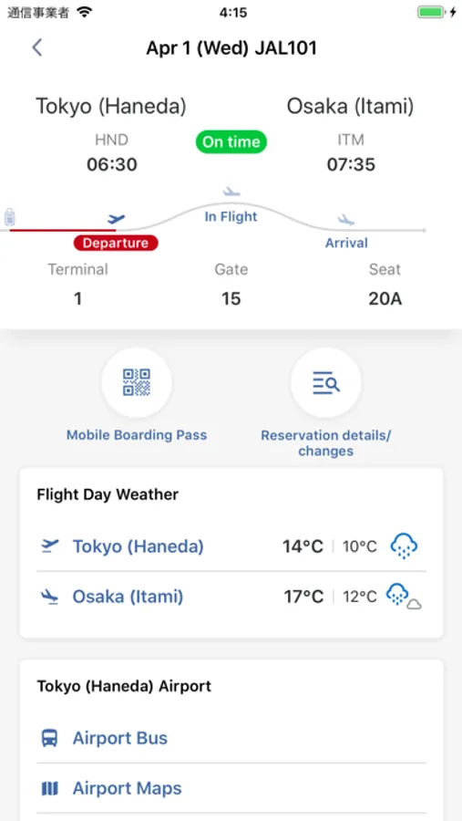 By tapping the flight information on the home screen or My Booking, you can view more detailed information about your itinerary in chronological order according to your reservation and flight status.