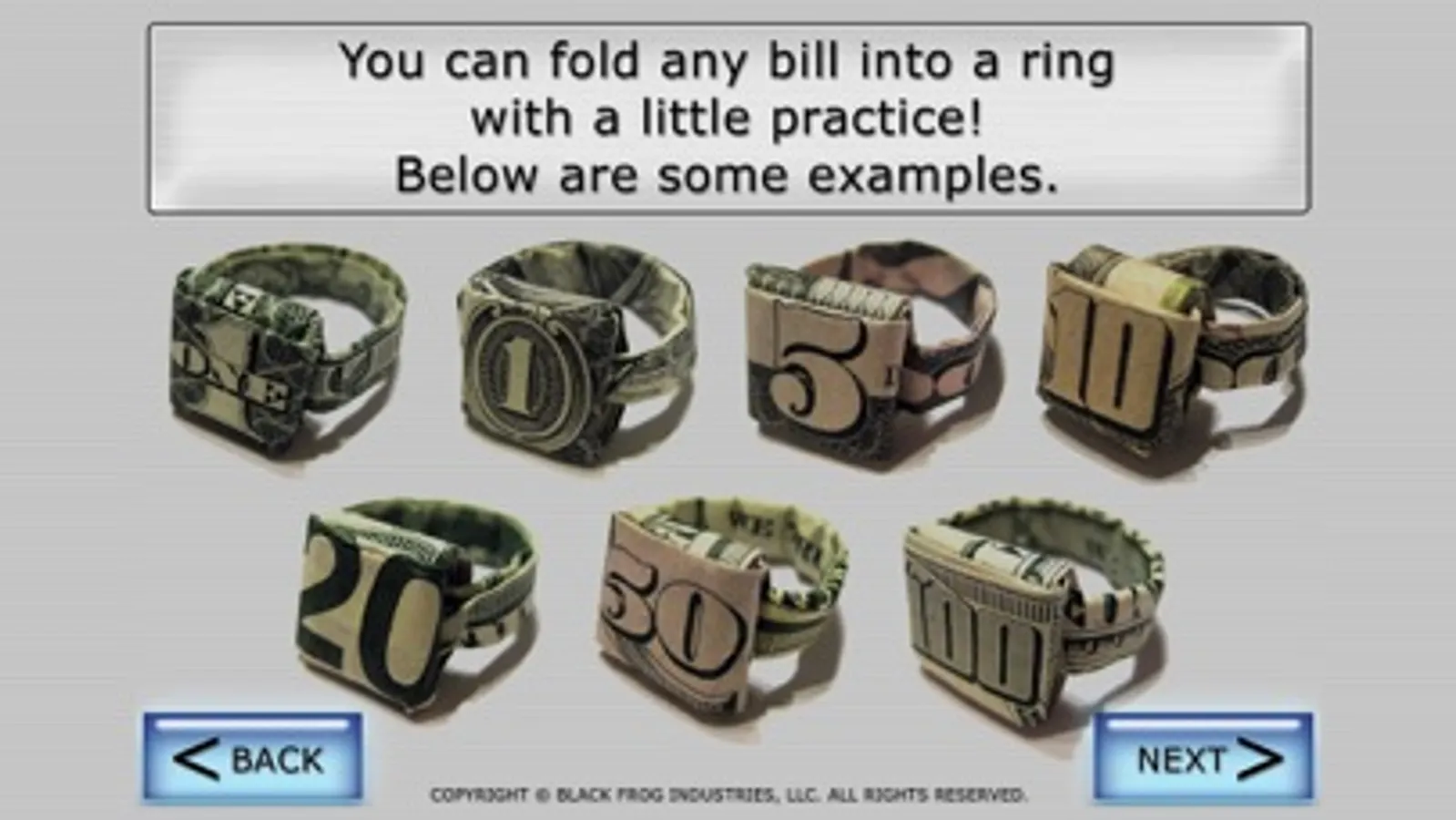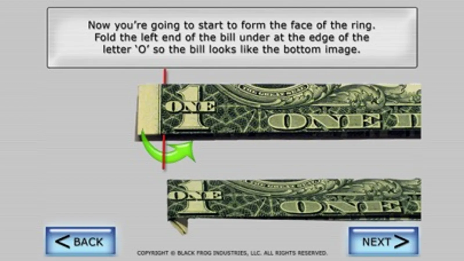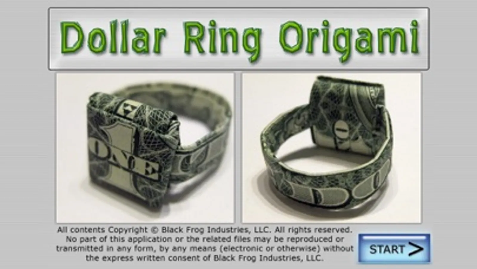 NO tape, NO glue, and NO tools required! All you need to do is fold the bill and follow the instructions! It takes only minutes to create! Make a Dollar Ring™ using only a bill and your fingers!