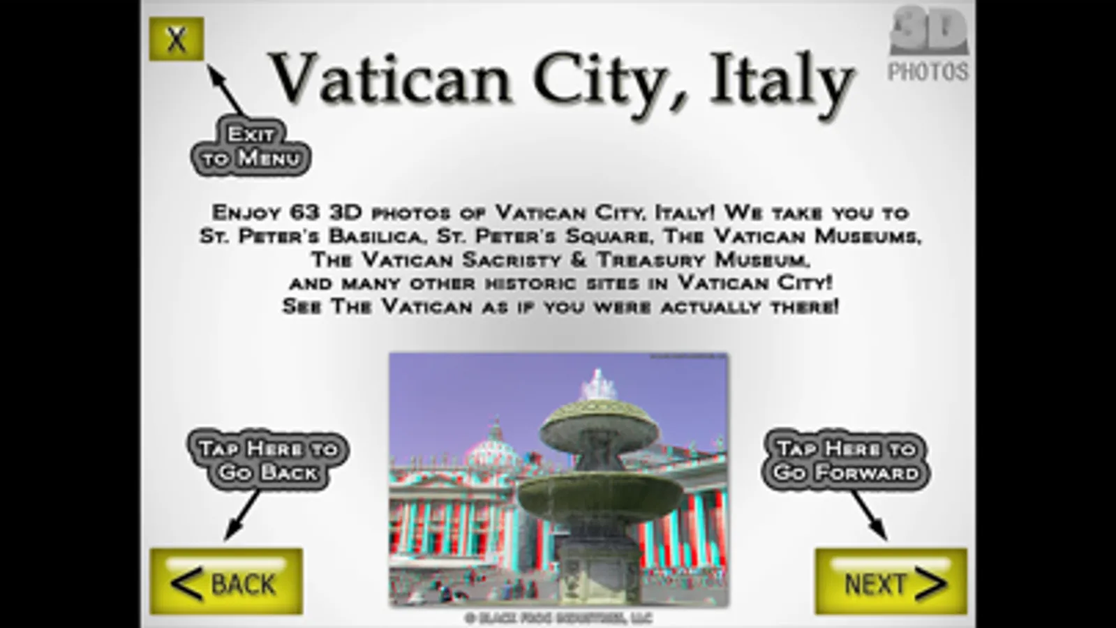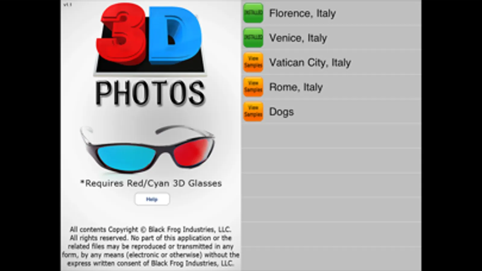 Enjoy 327 professional quality 3D stereo photographs! These are some of the highest quality 3D photos you will find anywhere taken with state-of-the-art 3D camera equipment. You need red/cyan 3D glasses to view these photos. Most people already own a pair of these 3D glasses, but if you don't, they are easy to find online.