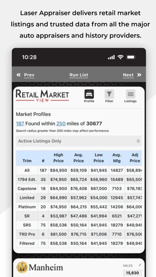 Retail Sales Data – Discover live sales data and Market Days’ Supply (MDS) for the vehicle you’re researching using proprietary Laser Appraiser data;
