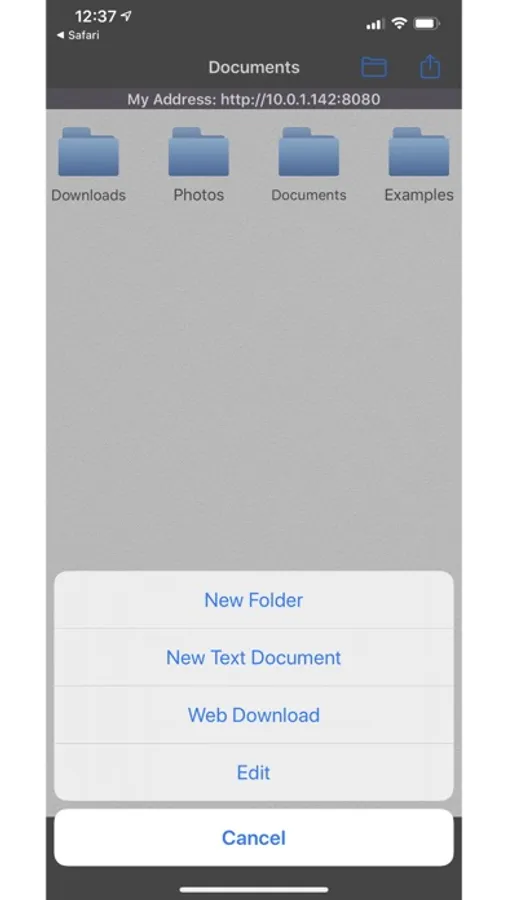 • Use a web browser to transfer files between your computer and this app.
