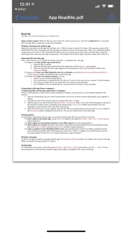 • Print remote files on MobileMe, Box.net, or Dropbox, or download them into this app.