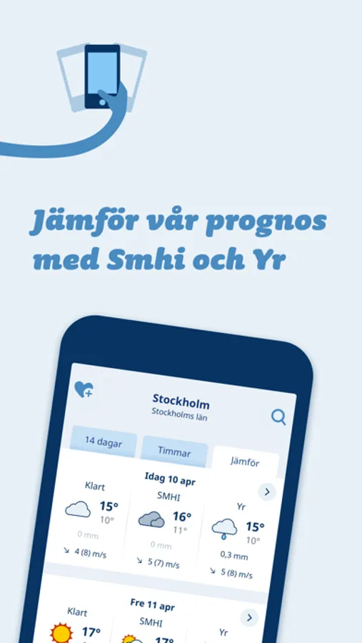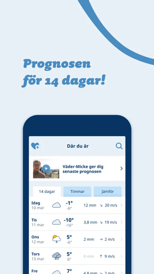 Se väderprognos 14 dagar framåt eller timme för timme.