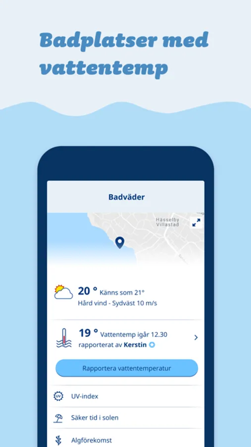 Vattentemperatur för badplatser i Sverige. Du kan se rapporter om vattentemperatur från kommunen och andra Klart-användare. Du kan också rapportera in temperaturen själv. I kommunens rapport finns också vattenkvalitet och algblomning.