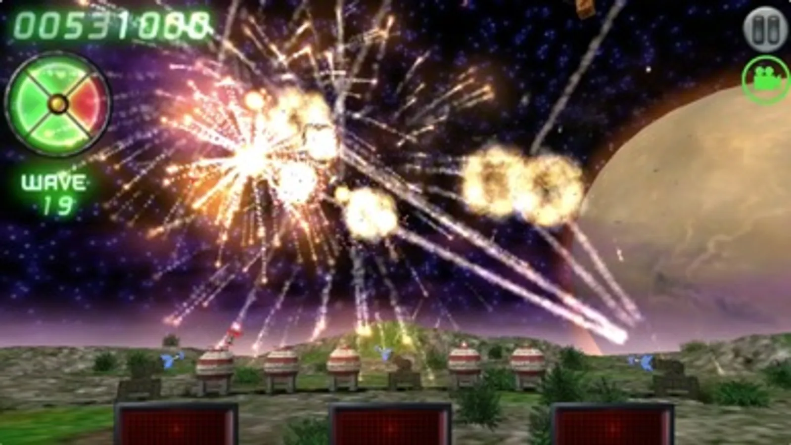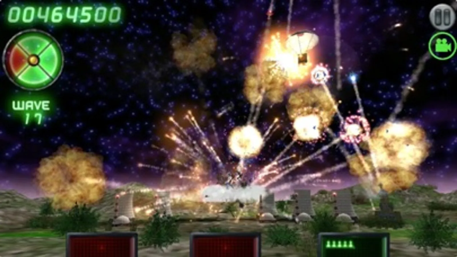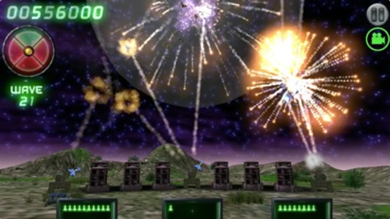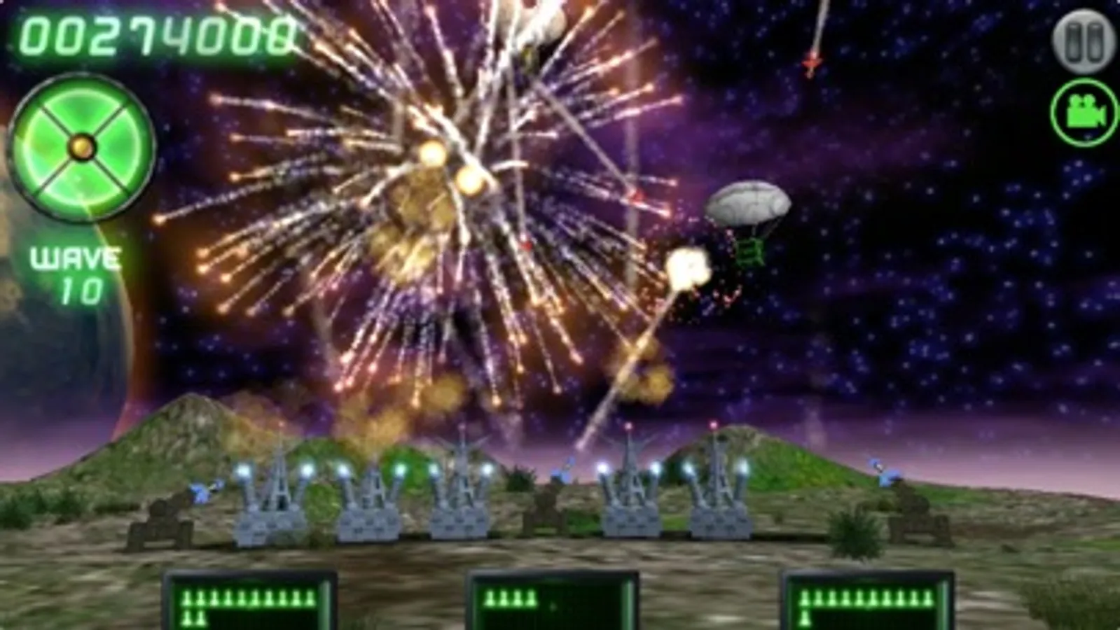 There are falling missiles and you have rocket launchers which fire interceptor rockets to shoot down the incoming missiles. You tap the screen to launch a rocket toward that point, and there are falling powerups which you can shoot down as well.