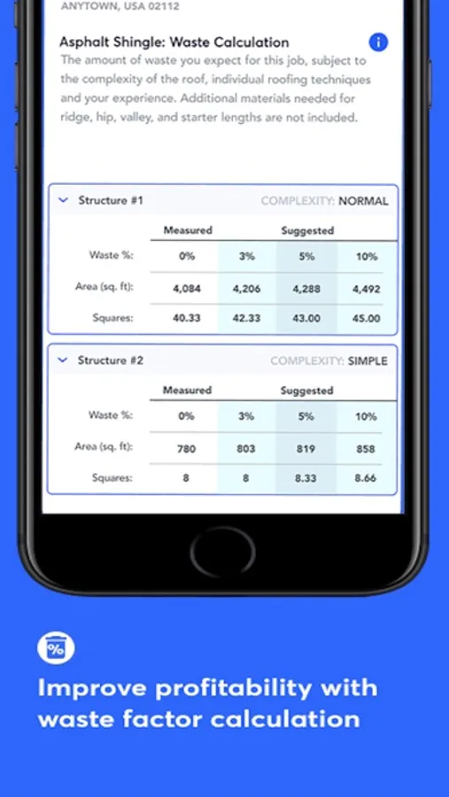 - A Suggested Waste Factor, unique to every residential asphalt roof